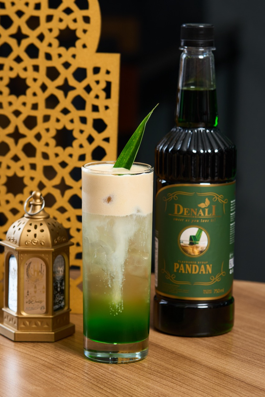 Es Dawet ala Denali adalah minuman segar bernuansa tradisional dengan sentuhan modern, memadukan pandan syrup, banana syrup, lemon juice, dan coconut water. Perpaduan ini menghadirkan rasa manis harum khas Nusantara dengan sensasi ringan dan menyegarkan.